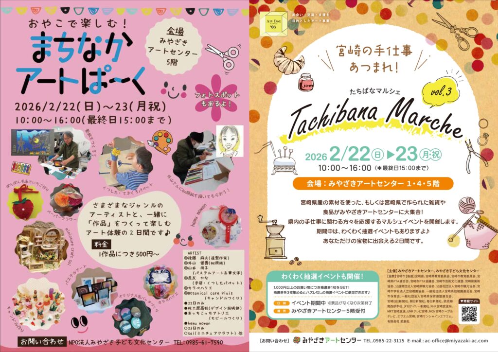 宮崎県産材で作った、もしくは宮崎県で作られた雑貨や食品がみやざきアートセンターに大集合!県内の手仕事に携わる方々を応援するマルシェイベントを開催します。